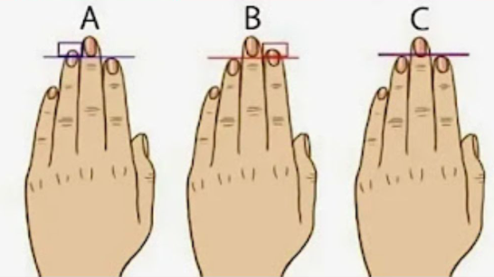 এই ব্যতিক্রমী বিশ্লেষণটি মূলত পুরুষদের ক্ষেত্রে প্রযোজ্য, কারণ এই দুই আঙুলের দৈর্ঘ্য অনেকটাই নির্ভর করে শরীরের টেস্টোস্টেরন হরমোনের মাত্রার ওপর। সেই অনুযায়ী পুরুষদের তিনটি ভাগে ভাগ করা যায়: A, B এবং C।